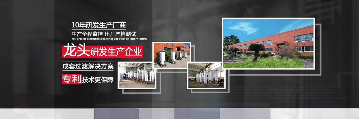 成都愛爾純凈化設(shè)備有限公司,坐落于美麗的天府之國(guó),成都市溫江區(qū)海峽科技園工業(yè)區(qū),專業(yè)從事于過(guò)濾、凈化技術(shù)的研發(fā)應(yīng)用,產(chǎn)品有保健酒過(guò)濾設(shè)備、白酒過(guò)濾設(shè)備、白酒凈化設(shè)備、水凈化設(shè)備等,公司引進(jìn)世界先進(jìn)過(guò)濾分子技術(shù),結(jié)合專業(yè)技術(shù)人員資深多年實(shí)踐經(jīng)驗(yàn),解決酒類、飲水類后期處理難題。 業(yè)務(wù)涵蓋,酒類過(guò)濾:除混濁沉淀,澄清處理、除苦味,異雜味,新酒催熟陳化處理 、除塑化劑、固形物、雜醇油、甲醇及各類含量超標(biāo)后期處理。 水類:軟水、純凈水、礦泉水、飲料等凈化處理。用心為客戶提高生產(chǎn)效率、提高產(chǎn)品質(zhì)量、降低生產(chǎn)成本、環(huán)保減排而開發(fā)創(chuàng)新,堅(jiān)持奮斗。 公司至誠(chéng)每一位客戶,“誠(chéng)信服務(wù),客戶至上”為宗旨,為客戶要求,用心凈化每一點(diǎn)滴,我們都將以精準(zhǔn)的數(shù)據(jù)化設(shè)計(jì)、嚴(yán)格的設(shè)備制作質(zhì)量把關(guān)、快捷專業(yè)的安裝調(diào)試以及周到的售后服務(wù),解決客戶生產(chǎn)過(guò)程中遇見的各種酒、水后期處理的技術(shù)難題。